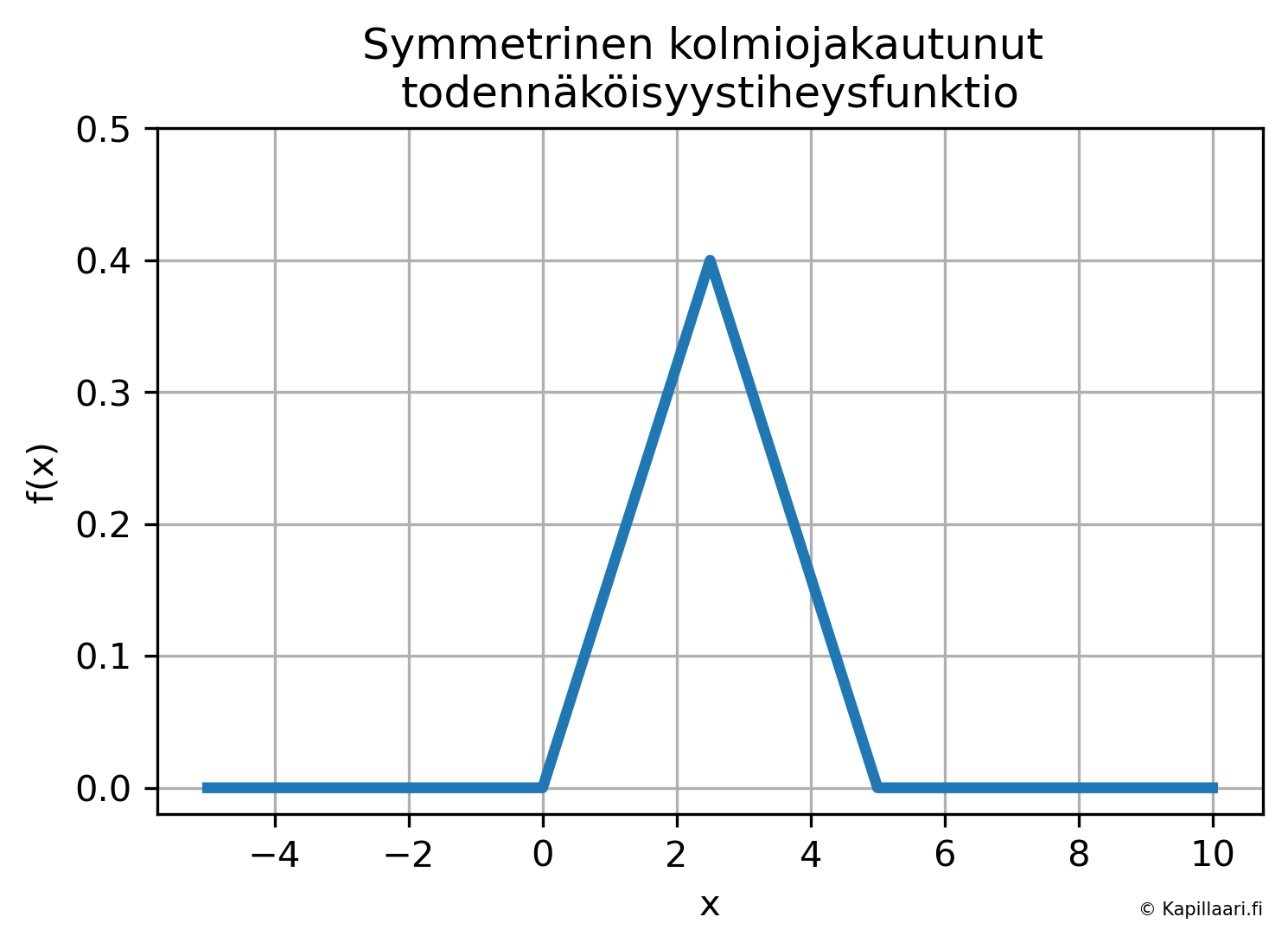 Seuraavassa kuvassa on esimerkki jatkuvasta ja symmetrisestä kolmiojaukautuneesta todennäköisyystiheysfunktiosta.