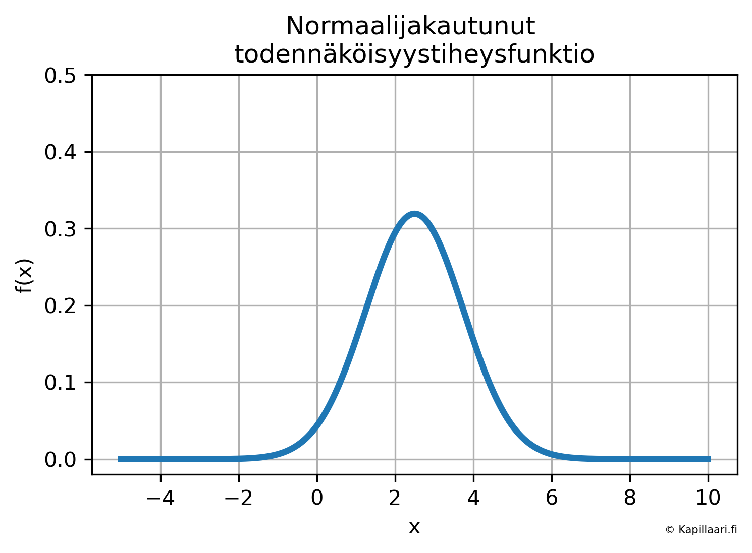 Funktio \(f_X(x)\) tarkoittaa muuttujan \(X\) todennäköisyystiheysfunktiota.